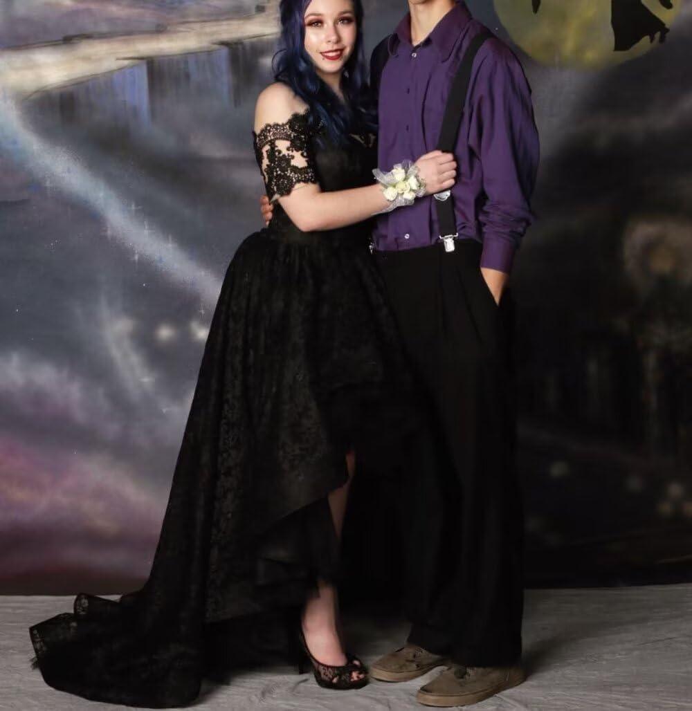 If you want a casual goth vibe, translate the formal details into everyday edge: swap heels for combat boots, throw on a cropped leather jacket, and add layered silver necklaces and rings to amplify the lace texture. Fishnet or patterned tights, a waist belt to define the midsection, and a matte dark lip turn the gown into a statement street look without much tailoring—the hi‑low cut makes it easy to transition between floor‑sweeping drama at the back and practical movement at the front. Below is a quick size/fit note to help you decide:
